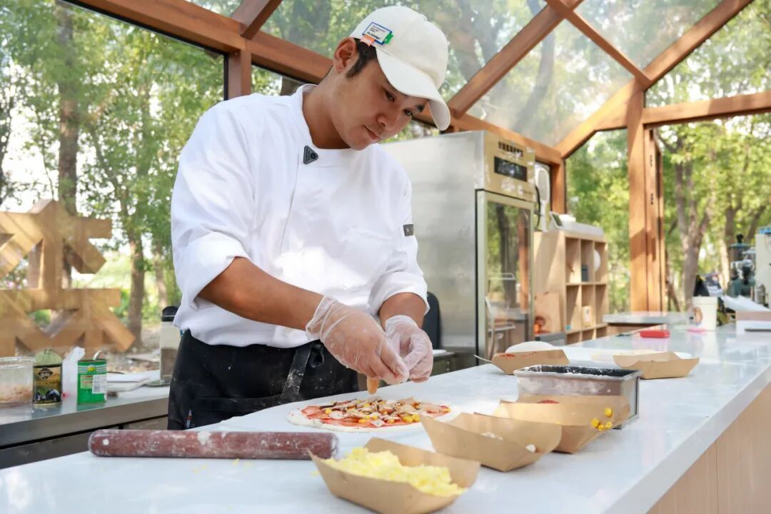 从“森呼吸”到“窑火暖”,玻璃房的新生谁能想到?这座被绿植环绕的玻璃房,曾是主打静谧体验的“森呼吸小屋”。为让忆红居·红色主题馆的文旅体验更具烟火气与互动性,运营方决定对空间升级改造,引入窑烤披萨这一兼具手作乐趣与分享属性的业态,赋予“森呼吸”新的内涵。
