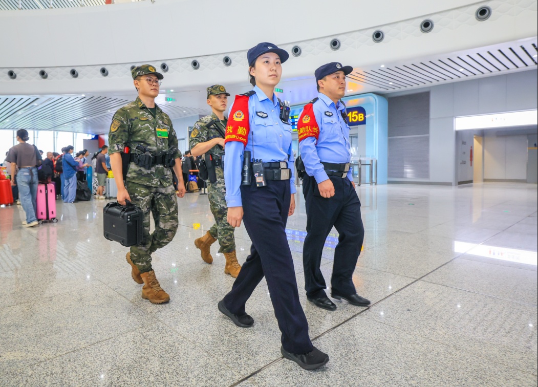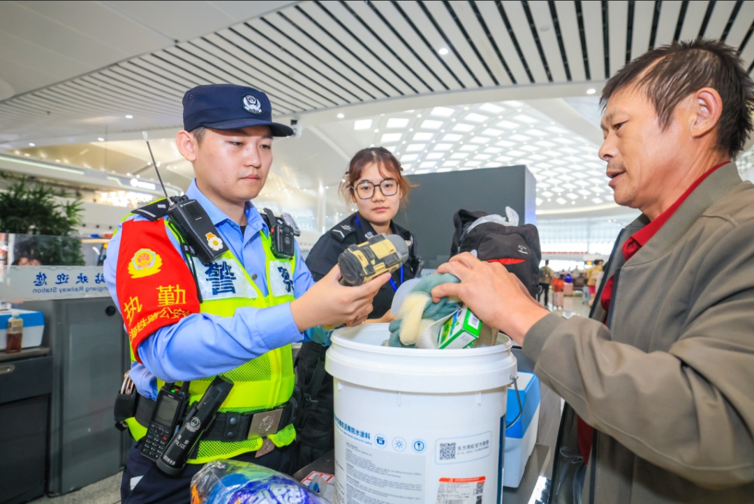 国庆、中秋“双节”期间,上海铁路公安处松江站派出所合理调配警力,开展精准排查与巡逻安检工作,全力维护站内治安稳定有序,为旅客营造安全、顺畅的“双节”出行环境。9月30日,民警在站内持续开展巡逻安检,以实际行动为旅客平安出行保驾护航。