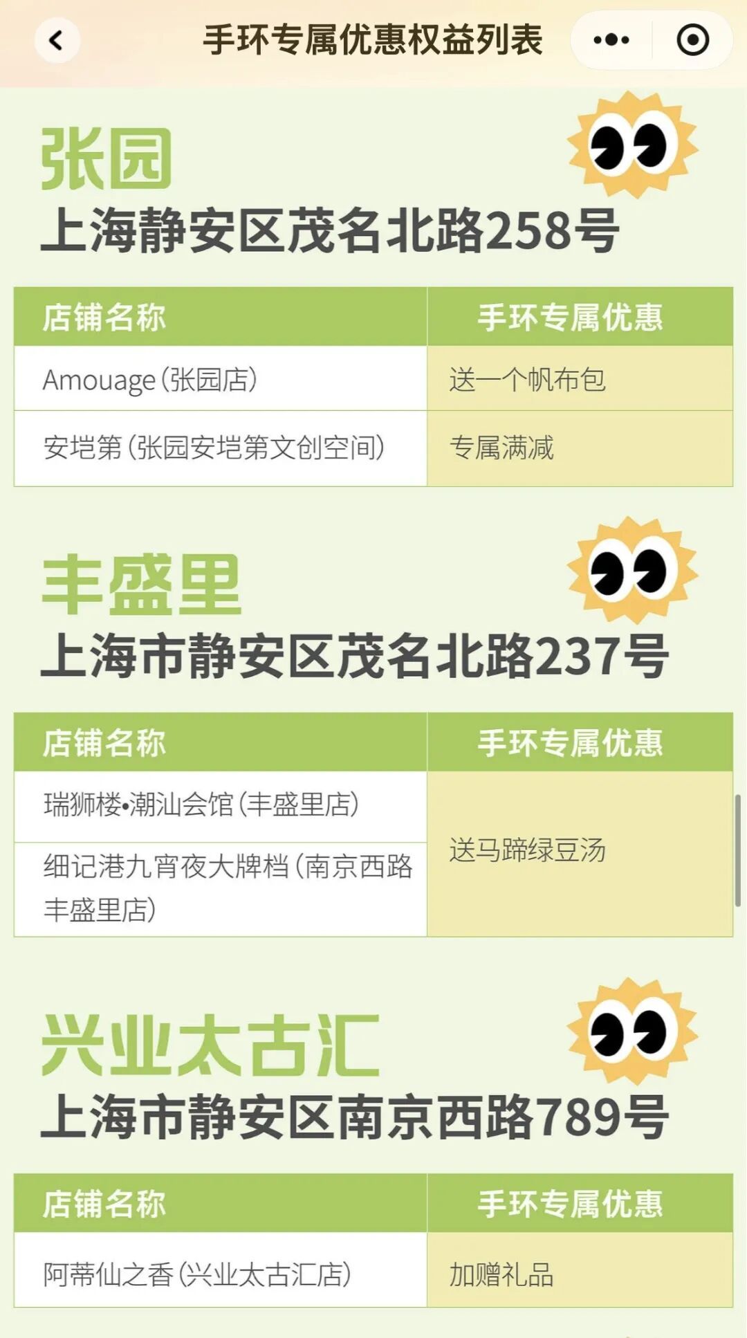 目前,已有零售、餐饮、文旅、体育、展览等千余家商户提供手环专属优惠,更多手环专属优惠持续更新中。也就是说,只要一个手环在手,可持续享受后续专属优惠。保存好手环,可千万别丢哦!