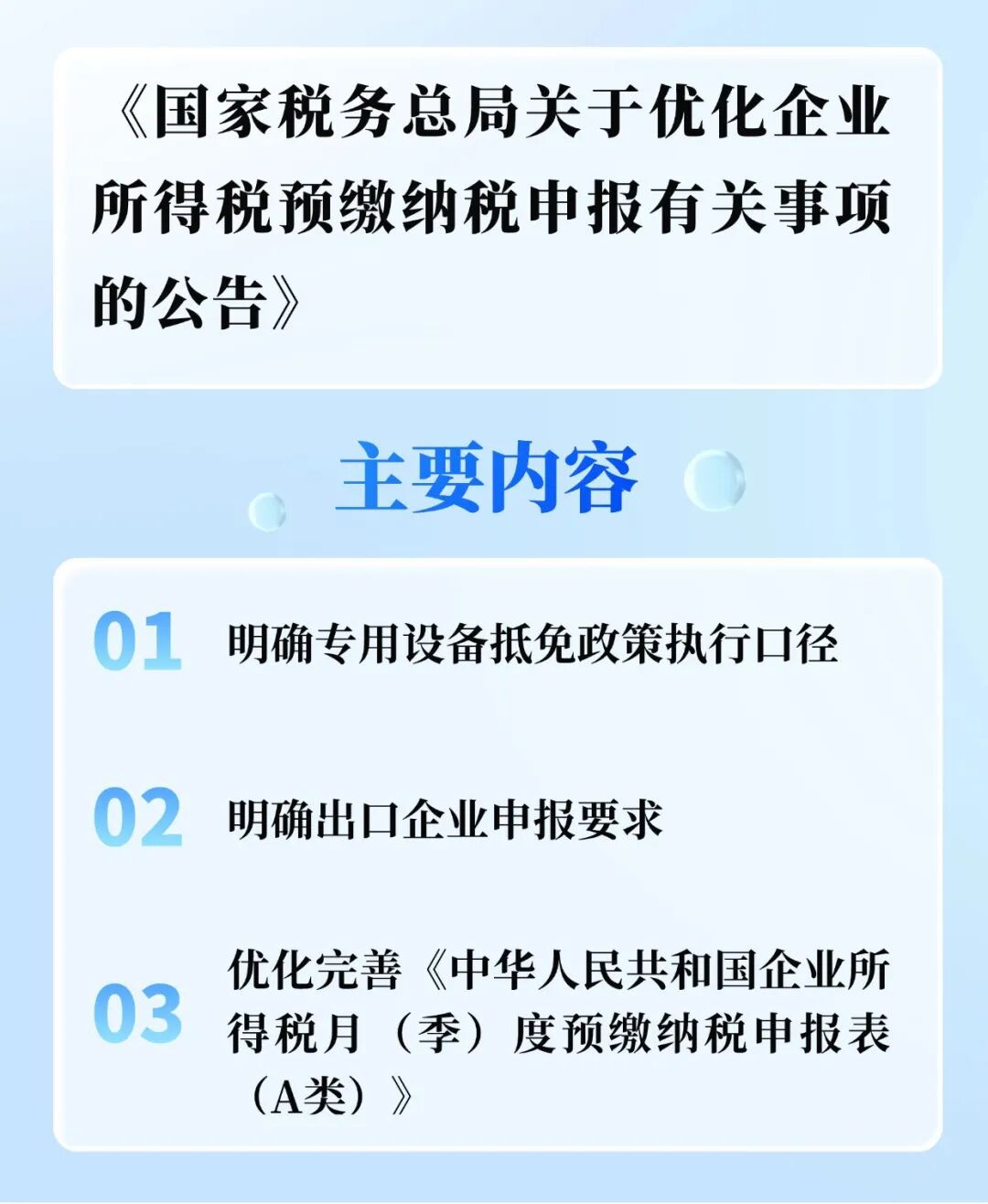 2025年10月1日起施行!《国家税务总局关于优化企业所得税预缴纳税申报有关事项的公告》