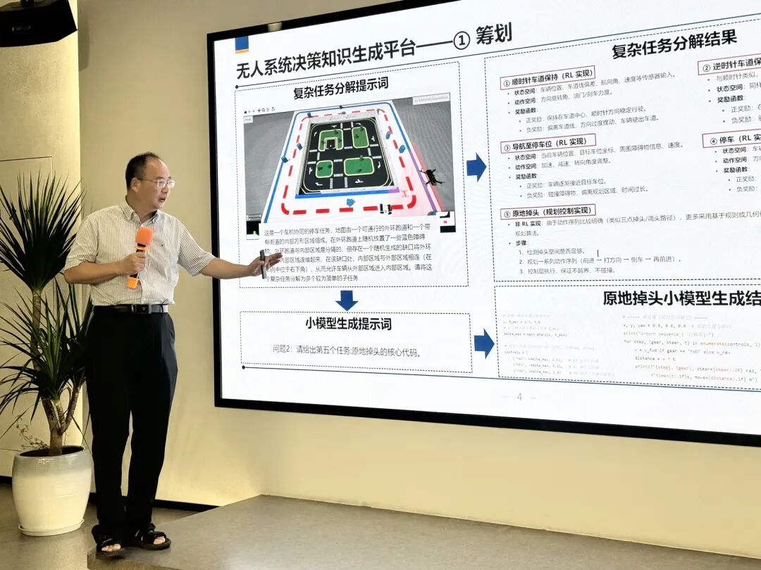 这种融合路径,也在其他高校研究者的工作中被不断验证和深化。上海大学计算机工程与科学学院副院长骆祥峰介绍了“多模型协同”在知识生成与微调中的实际成效。他强调,不同规模、不同侧重的模型,各有其独特的应用场景。通过“任务分解+大中小模型协同”,可以让无人系统在仿真模拟、场景还原等复杂任务中更好地进行实时决策,实现集群协同作业。“单靠大模型难以面面俱到,与中小模型的协同其实是大规模落地的保障。”