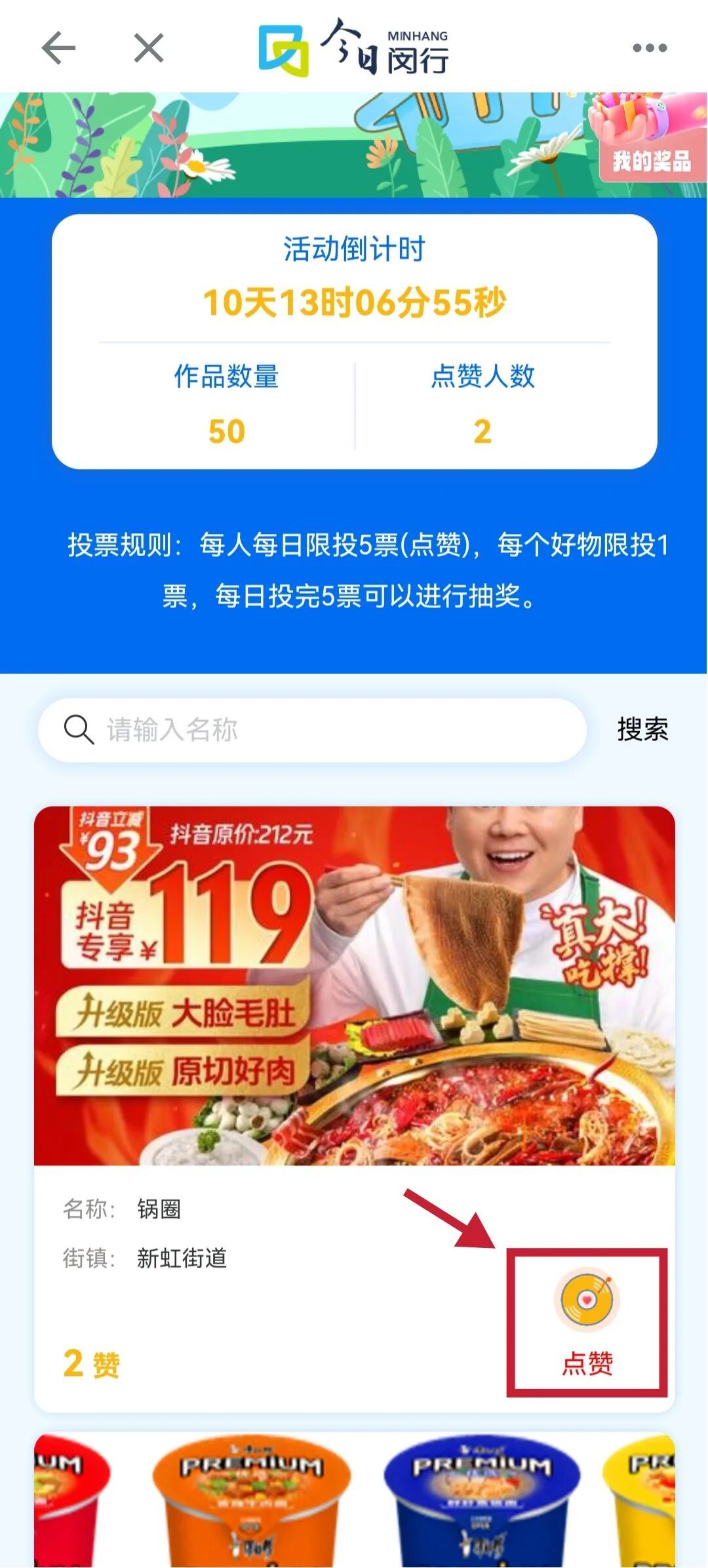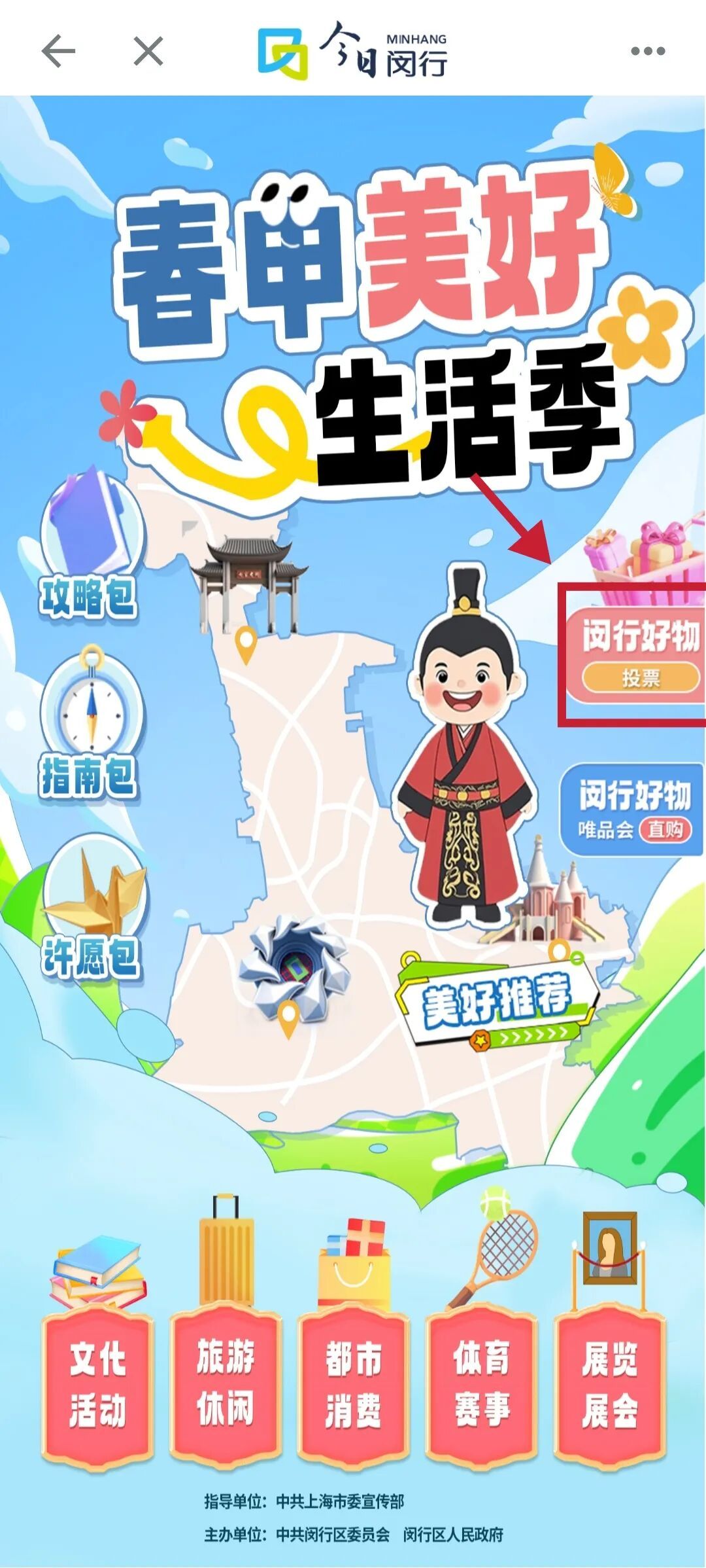 2.找到“春申美好生活季”——闵行好物,即可为心仪好物投票。每个IP每日限投5票,且单个产品每日限投1票(合理分配票数,给每款心仪好物都送上支持!)。投票结束后,区商务委将联合区文化旅游局、区市场监管局、区消保委等多个权威部门,再加上专业专家组成评审组,综合网络投票结果与产品品质、市场口碑、产业价值等多维指标进行评定。最终,排名前10的产品将直接荣获“闵行好物”称号;排名第11—20名的产品也将获得“闵行好物提名”的荣誉。奖品全部是候选企业的优质产品,而且会分批次发放,说不定你投票支持的好物,就会成为你收到的惊喜礼品!还在等什么?赶紧登录“今日闵行”App,为你心中的“闵行好物”投票,既能助力优质产品脱颖而出,又有机会赢大奖!