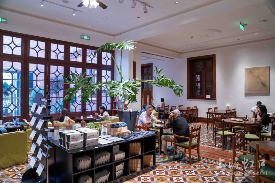 雕花楼梯、拼花地砖、沙发壁炉,年轻面孔兜转于天井和雕花楼梯上,不断定格留下倩影……坐落于百年历史建筑颍川寄庐内的“一尺花园”咖啡馆,也是滨港・今潮8弄年轻人打卡的“必选项”。