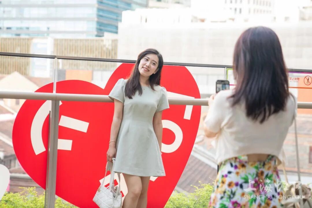 位于商业中心L2-L6户外露台的甜爱廊观景步道,是杨小姐向记者强烈推荐的打卡点,这里既能俯瞰66幢老建筑,也能远眺城市天际线。“在这里拍照氛围感拉满,随手一拍就是复古大片,我只要和朋友来,都会推荐她们来这儿打卡。”