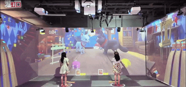 “玩家站在场地中央,全神贯注地盯着屏幕中的猫咪,根据指令作出跳跃、跑动不同的动作。”作为一家裸眼3D运动空间,玩家无需佩戴任何VR设备,就能在“智荟・奥拉之境”沉浸式感受各类休闲运动场景。