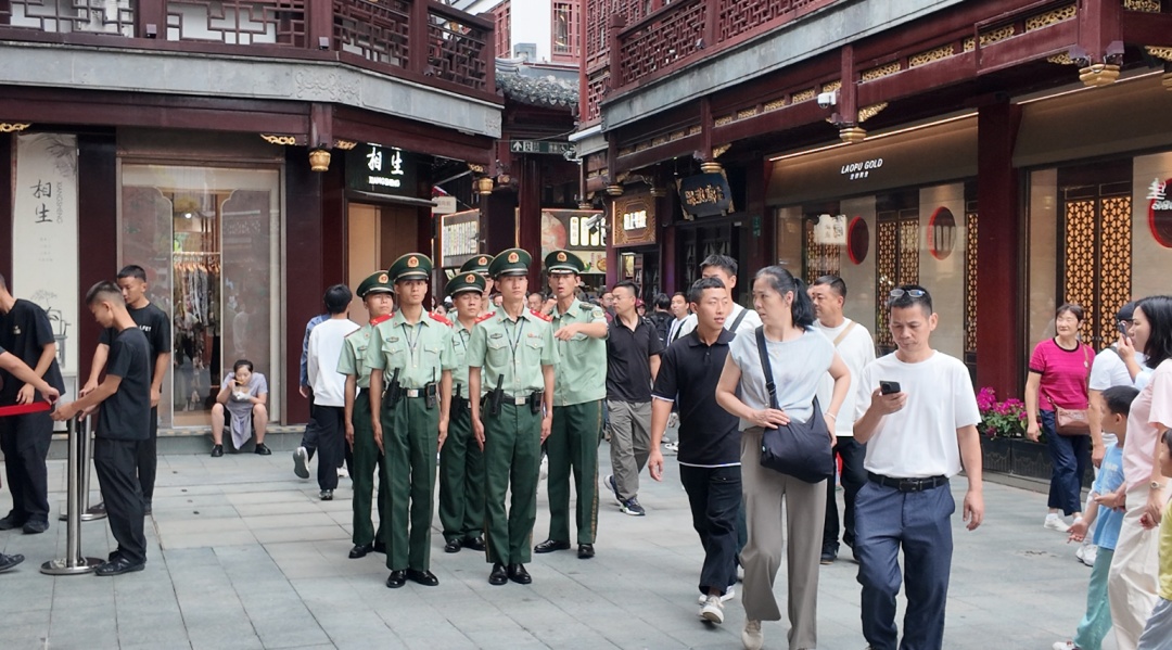 “这里人气太旺啦,外国、外地游客都特别多,一下子就把国庆节的热闹气氛给烘托出来了。看到民警和保安在,我们出来游玩就觉得特别安心,很有安全感。”市民李阿姨告诉记者。