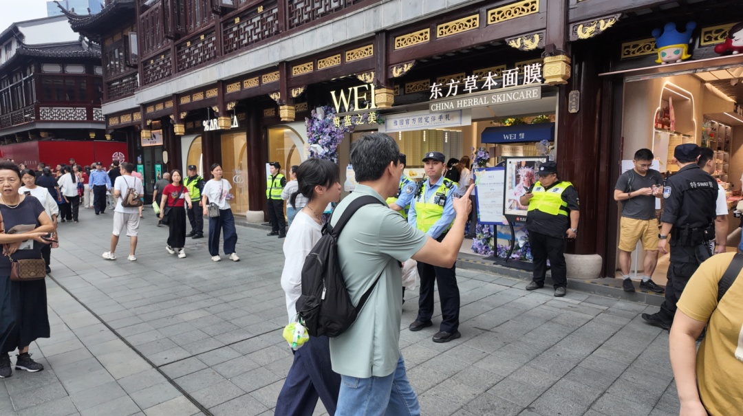 宋杰还详细介绍了不同客流情况下的管理策略:“当客流比较平稳的时候,豫园商城的8个出入口都会保持开放,方便游客进出。而当达到一定的人流阶段性高峰时,我们会采取‘三进五出’的措施,合理引导人流。像九曲桥广场,我们会设置蛇形通道开放,避免人员拥挤。同时,我们在商城各个点位,特别是人流高峰的风险点位,都做了特别安排,增加了执勤的安保警力,确保游客的安全。”