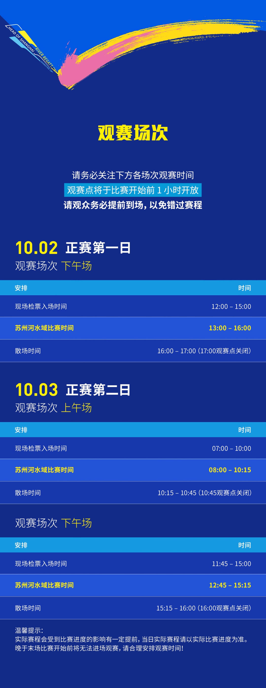 观看苏州河水域比赛,建议您提前规划到场时间,并仔细查阅赛程安排,以免错过精彩环节。