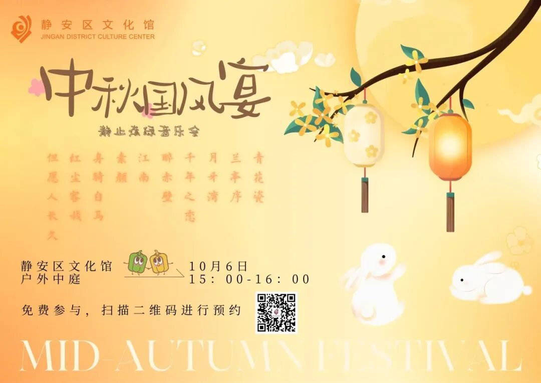10月6日15:00—16:00,静止蕉绿音乐会——中秋国风宴,以中秋节为背景,营造融入东方浪漫与诗意的全新国风音乐体验。