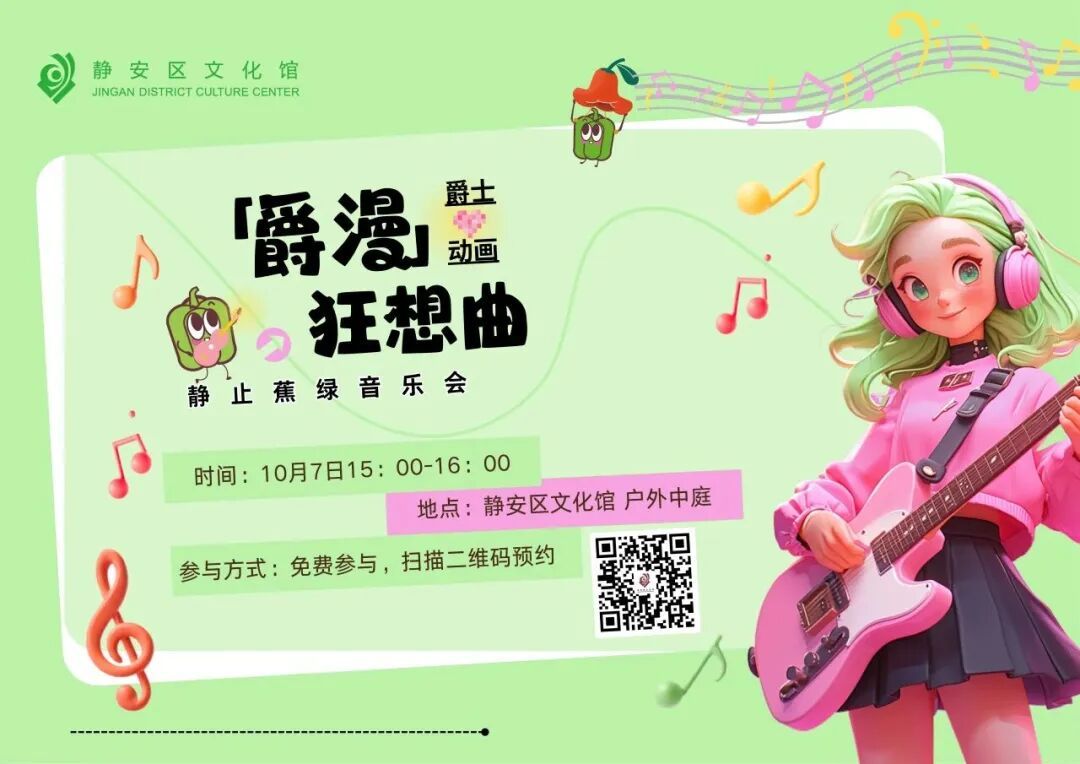10月7日15:00—16:00,静止蕉绿音乐会——爵漫狂想曲,带来动漫主题曲与爵士乐的惊喜“相遇”。