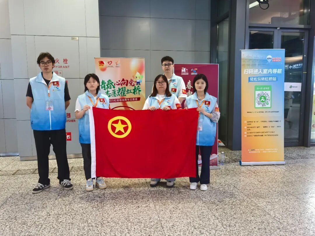 10月1日,共青团闵行区委在虹桥枢纽组织开展“青春心向党 志愿耀虹桥”主题团日活动。来自闵行区税务局、闵资集团、中建科技、中建八局、农行闵行支行、东海职业技术学院等各委办局团(工)委、区域化团建单位及高校志愿服务联盟的64名青年志愿者,组成12支青年突击队,分赴各服务岗位,以坚守诠释青春力量,用奉献彰显青年使命。