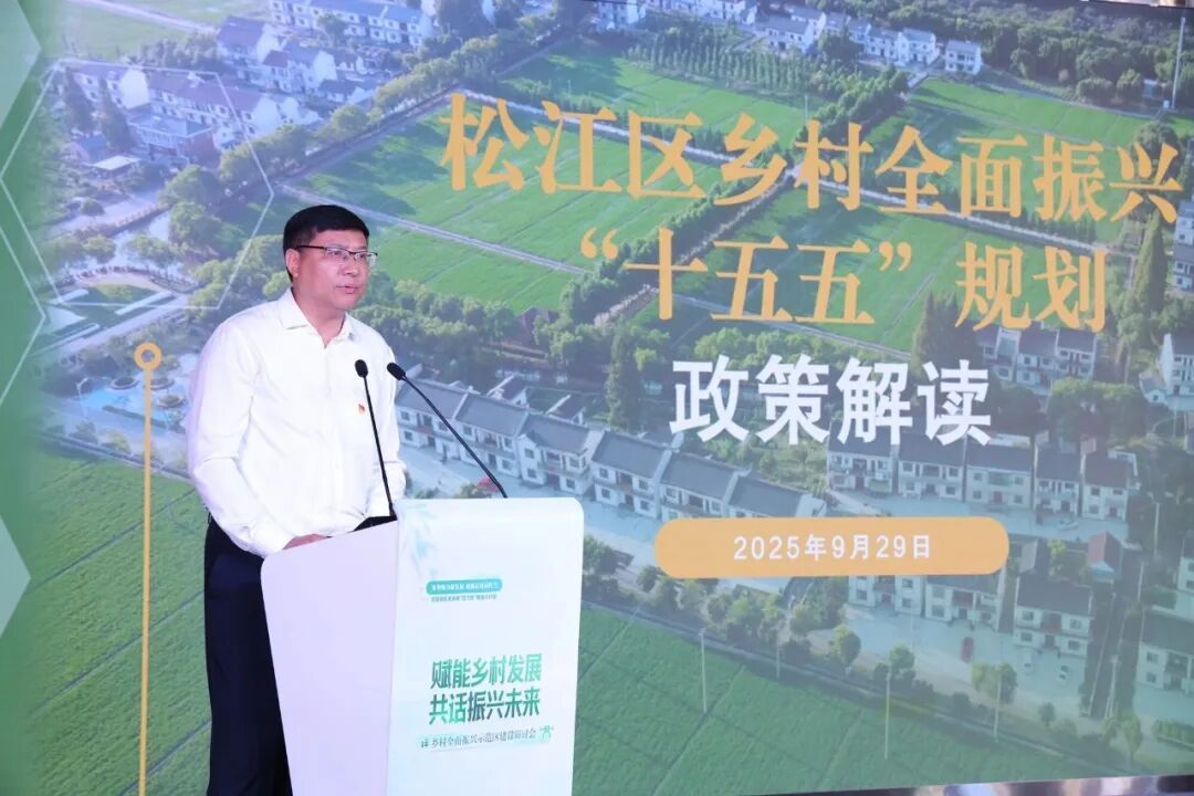 松江区农业农村委党组书记、主任黄建春作《松江区乡村全面振兴“十五五”规划》政策解读,从“城乡融合发展、现代农业发展、乡村产业发展、和美乡村建设、推进乡村治理、农民共同富裕、农业农村改革”七个方面阐述了规划中推进乡村全面振兴的主要任务和发展举措,让参会人员对乡村全面振兴示范区建设的规划蓝图有了全面的认识。