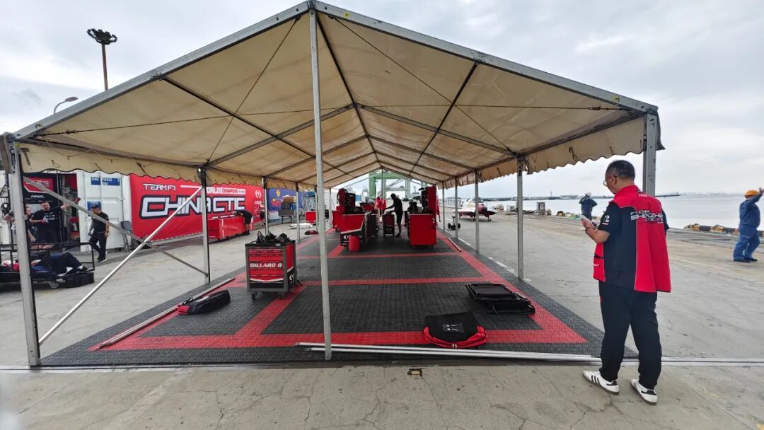 这些被称为“水上战斗机”的极速猛兽,在开箱后由专业团队迅速展开精细组装与全面调试。机械师对每一部件——哪怕是一颗螺丝钉都进行严格检查,确保赛艇以最佳状态迎接挑战。整个维修区与休息区也在高效协作中快速搭建完成。