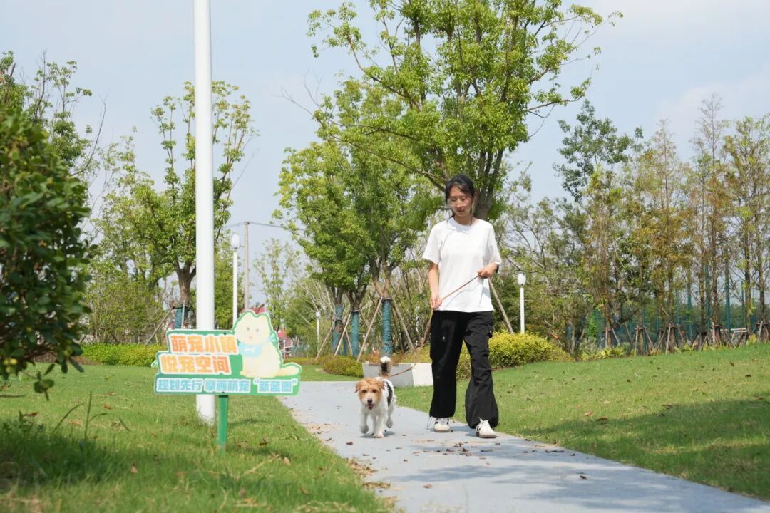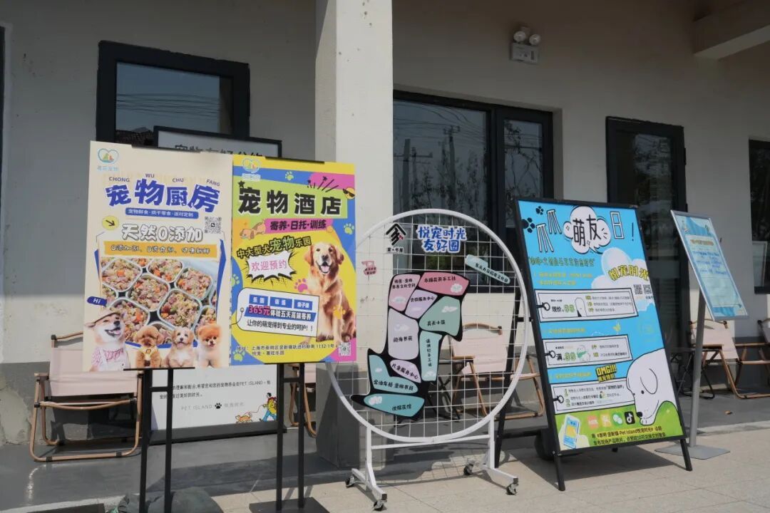 自2024年底起,竖新镇全镇域打造“萌宠小镇”IP概念,围绕竖新会客厅展开了一系列宠物友好空间改造。竖新会客厅的林间小道旁,彩绘的狗狗印象增添了萌宠元素,自行取用的宠物拾便袋让游客在携宠游玩时加深了文明养宠的理念与意识。2025年5月,悦宠·时光Pet Island开门营业,首位萌宠金毛店长“走马上任”,成为宠物友好互动空间开放的权威代言;同月,竖新镇首届萌宠乐购节暨宠物产业首发推介活动成功举办,岛内外众多游客齐聚悦宠空间露天大草坪,人宠共享“周末撒欢”新模式。