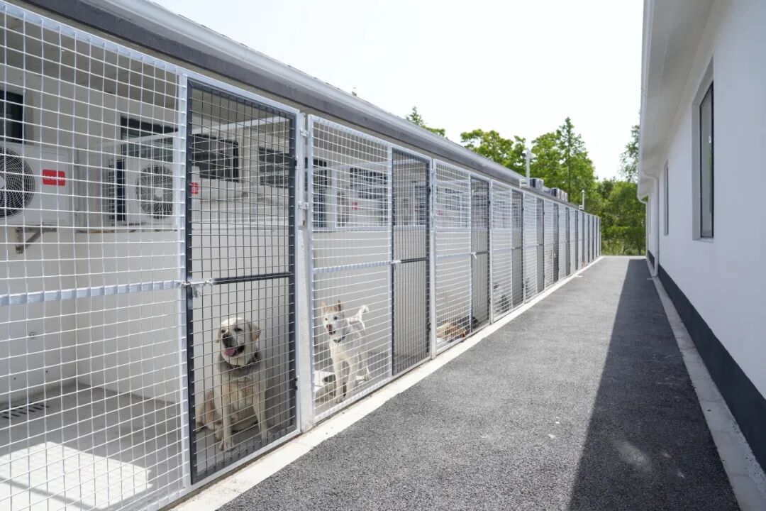 目前悦宠·喜旺乐园基地内共建有犬舍76间,每只宠物寄养期间均可独立享有4平方米室内区域和6平方米室外区域的超大活动范围,“一宠一间”的标准化寄养服务保障了每只宠物都能享有独立的生活空间。