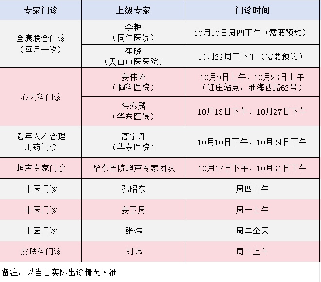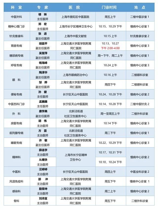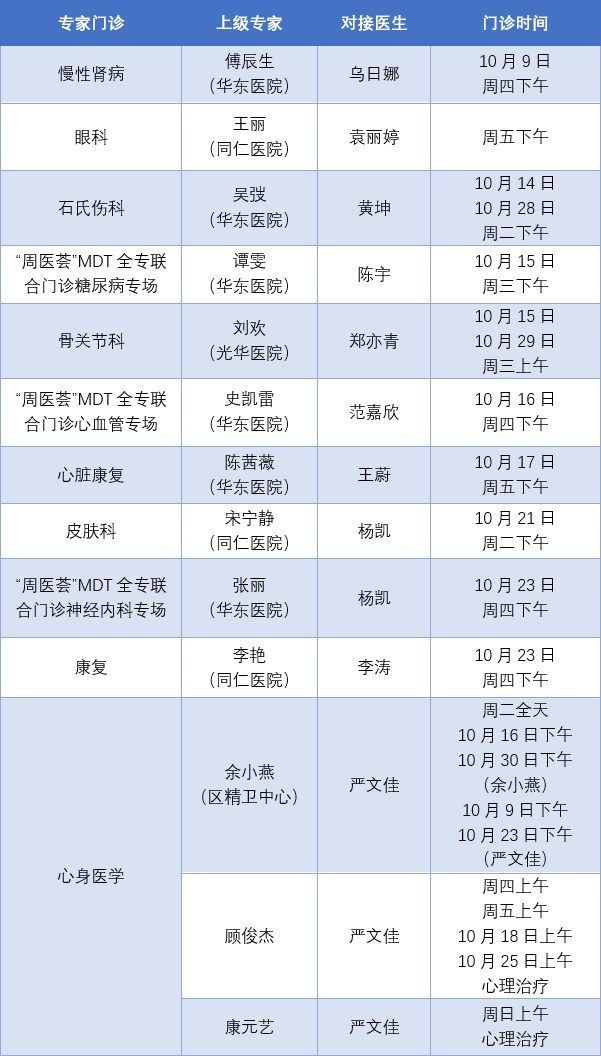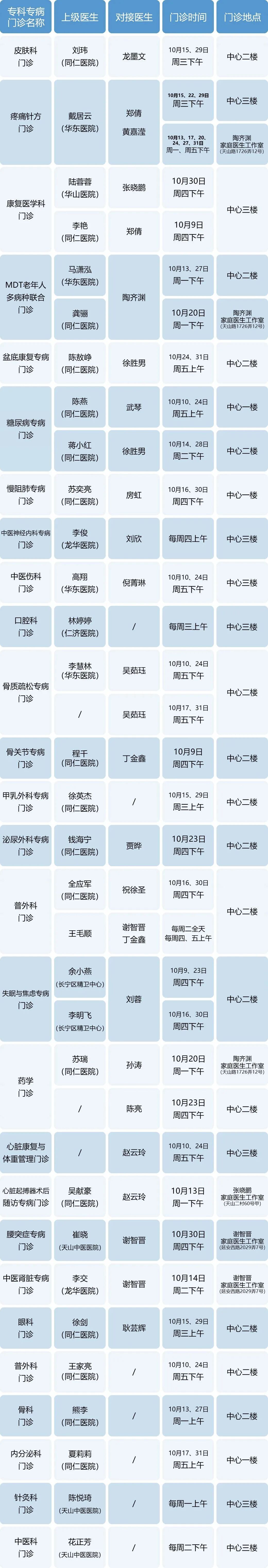 备注:以上专家门诊可以通过中心对接医生预约,也可以通过家庭医生预约。