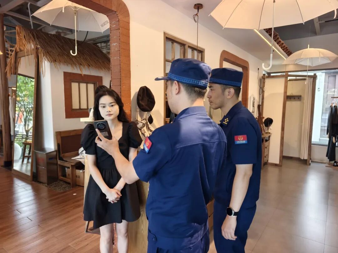 检查中,消防队员们深入景区的店铺、餐馆等场所,重点察看消防设施状况,逐一检查灭火器压力状态、实地查看经营场所的疏散通道、安全出口是否保持畅通,疏散指示标志、应急照明设置是否符合要求,灭火器配置数量、放置位置是否符合标准,疏散逃生示意图是否符合现场情况等,并详细询问了场所是否制定消防安全管理制度、工作人员是否经过消防安全培训。通过深入厨房区域,核查燃气设备使用规范、油烟管道清洗记录,全力确保餐饮场所燃气消防安全,加强气源、火源、电源管理,落实值班检查制度。