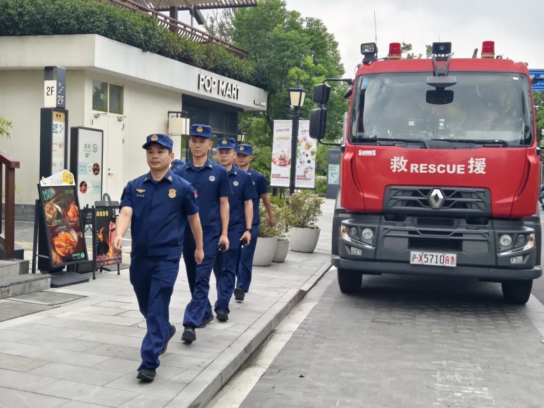 国庆节早上8点,青浦区盈浦消防救援站政治指导员常超峰和队员们准时入驻蟠龙新天地景区,开启“防消联勤”工作机制,通过全天候执勤巡逻与立体化安全宣传,筑牢景区消防安全防线。