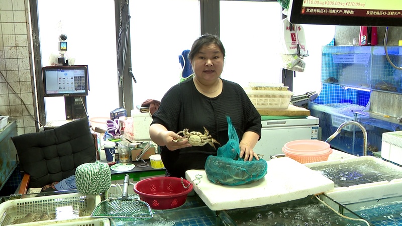 据介绍,目前只有少量的大闸蟹供应。商户告诉记者,这里的是昆山蟹,现在雌蟹还可以吃吃。3两半的雌蟹卖45元一只,今年的价格不是很贵,与往年差不多。
