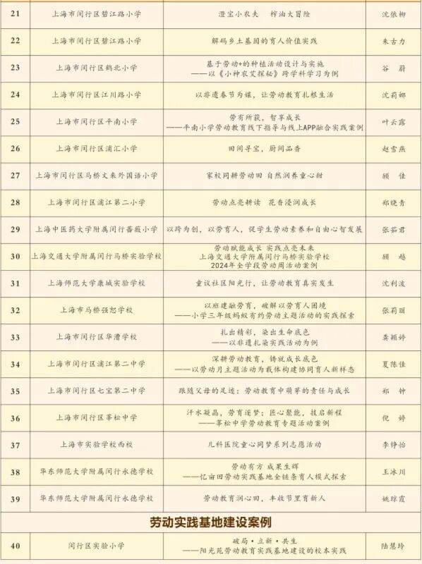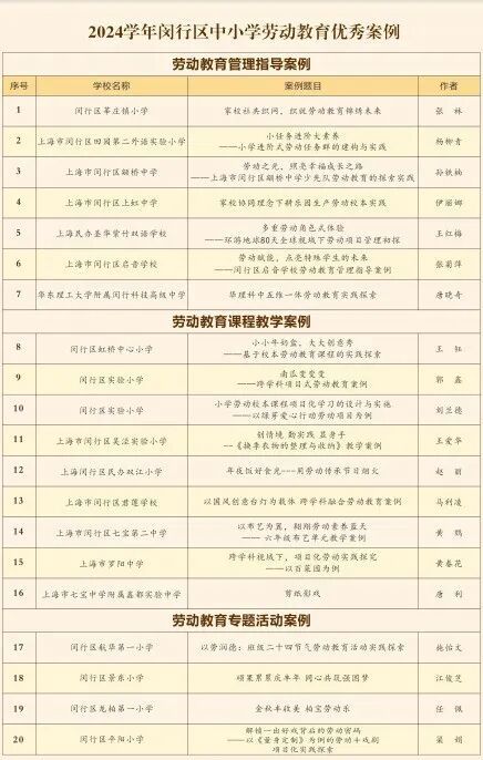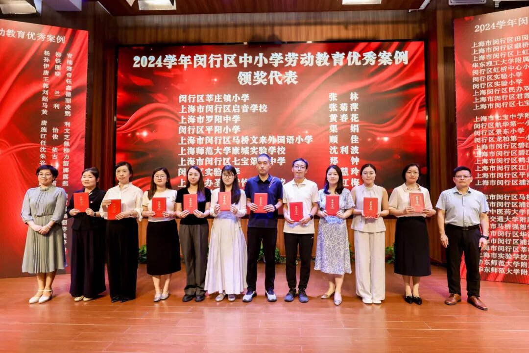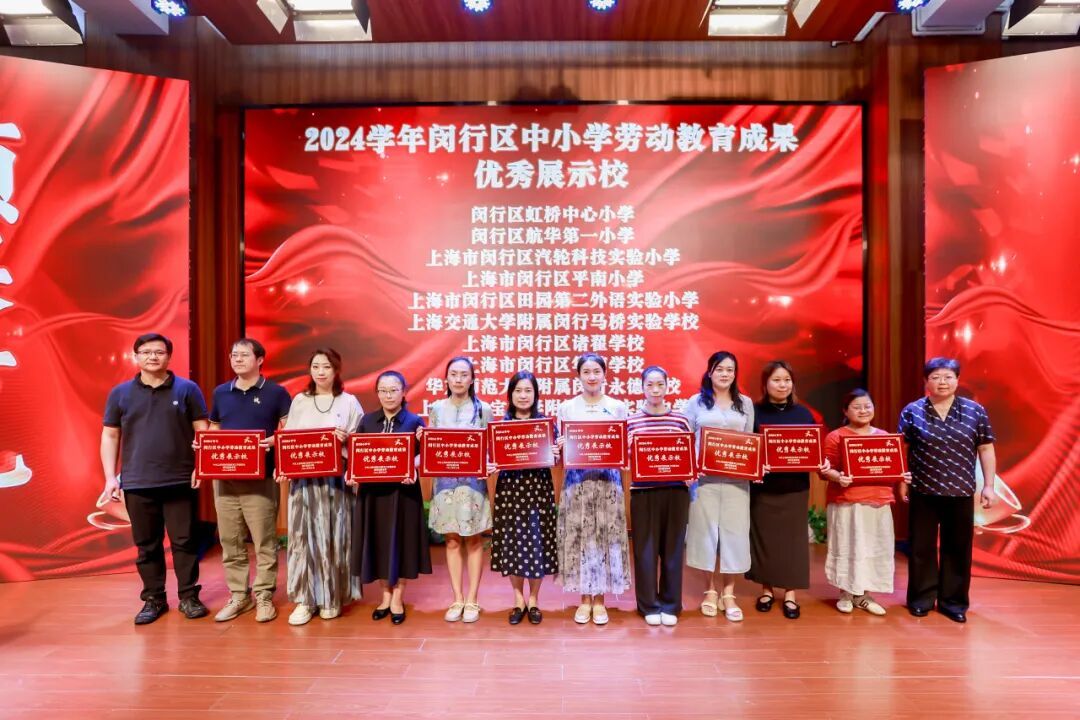 活动中,为10所2024学年闵行区中小学劳动教育成果优秀展示校颁发了奖牌,为10位2024学年闵行区中小学劳动教育优秀案例代表颁发了证书。