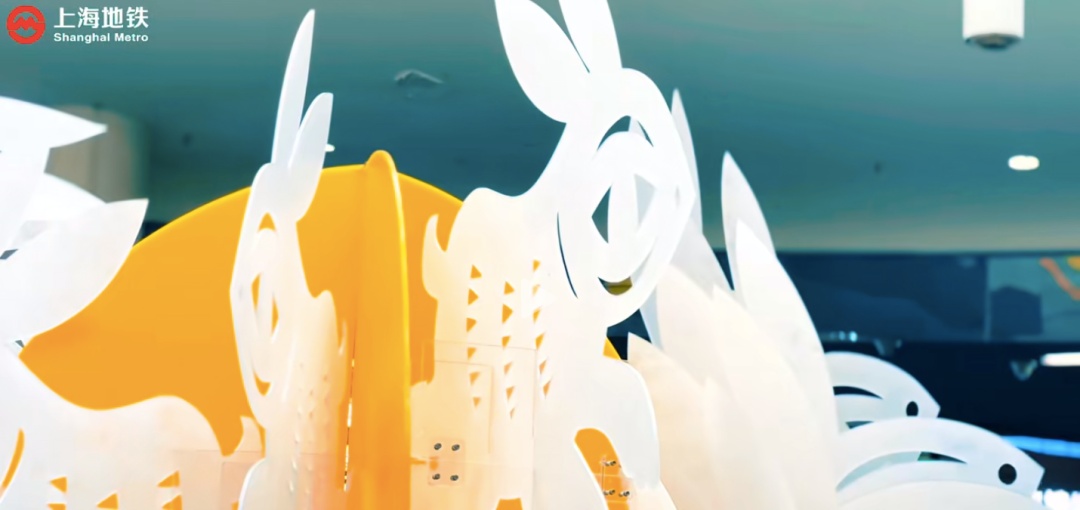 祖国昌盛,月满人圆!当非遗剪纸遇上当代艺术,传统文化的现代表达。这个长假,在地铁1/2/8/号线人民广场站中心,上海当代艺术博物馆特别城市艺术项目“月来月美”正在展出。白玉兰穹顶下,不同形态的兔子围绕着中心的巨大月亮,不同时间段的光线透过穹顶,在装置旁形成光影的变换,如同童年的走马灯,让乘客在地铁出行时体验到传统与当代艺术相融合的中秋佳节。