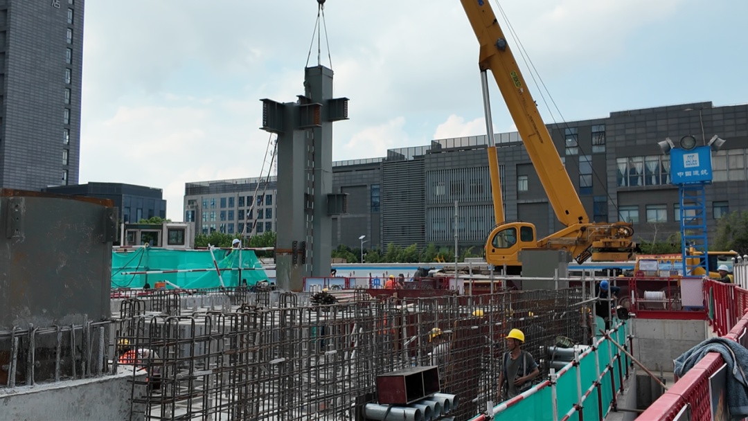 在9号楼钢结构施工区域,钢结构现场负责人朱健现场紧盯施工关键环节,他介绍:“这块是9号楼钢结构的主体,全部都是钢结构建筑,现在刚出正负零,正在做一节柱的吊装工作。”他表示,“在保证安全质量的情况下,十一期间我们坚守岗位,进行连续施工,确保项目建设稳步推进。”
