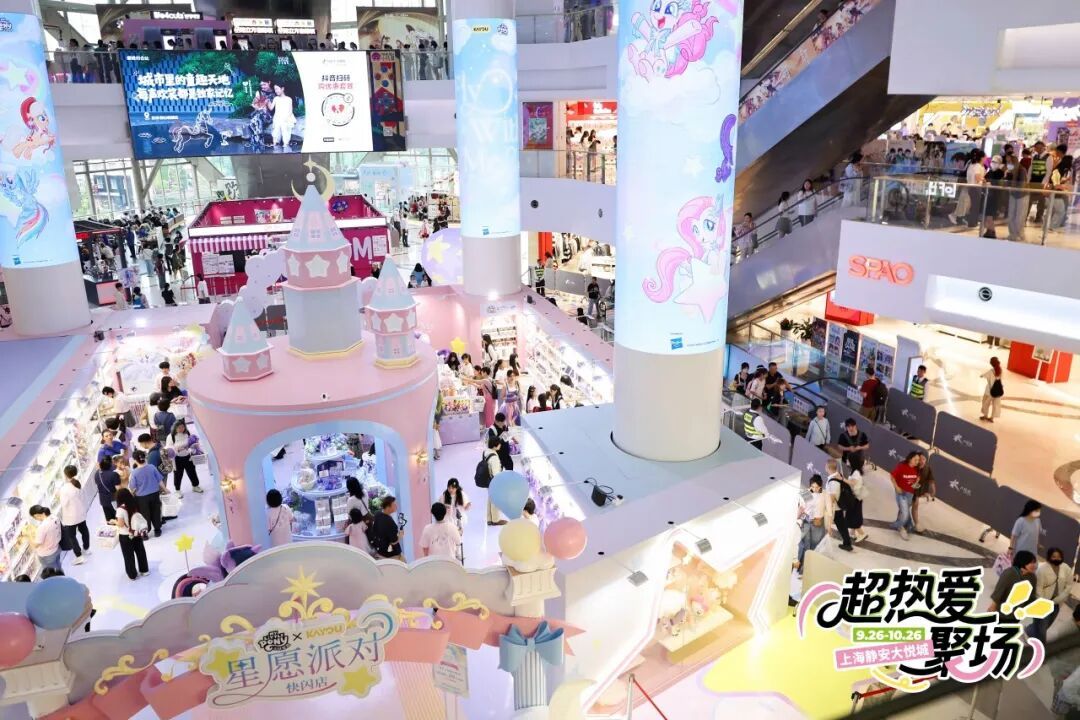 十一黄金周期间,卡游在上海静安大悦城携手孩之宝推出小马宝莉“星愿派对”主题快闪,现场首发100+全新周边:独家约稿Fly With Me、魔法花园系列与原版Pony系列集体登场,小马国女孩毛绒重磅亮相,解锁秋日绒感陪伴。