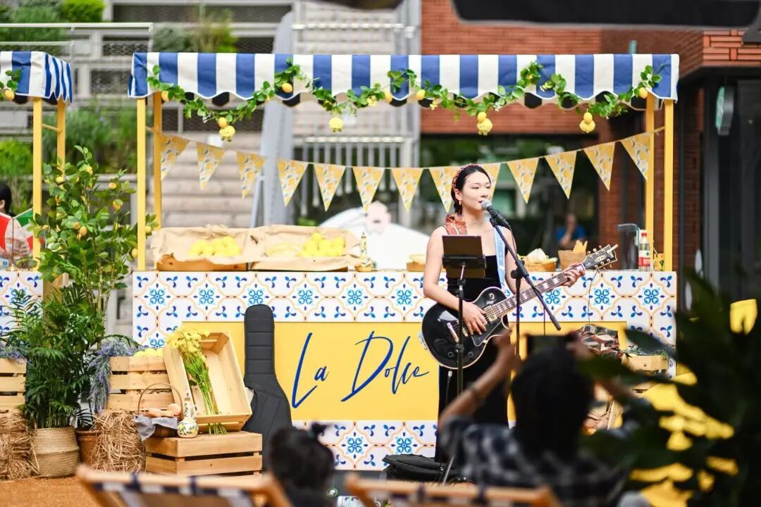 市集还设置了多个充满意式风情的打卡点,蓝白相间的马赛克墙面、挂满柠檬树的角落、充满度假感的沙滩椅……皆是值得驻足的美好瞬间。