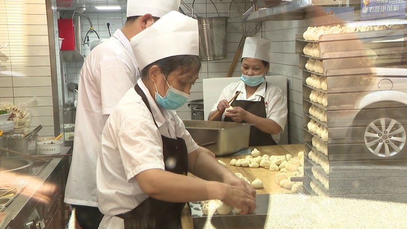 点心操作间里,师傅们正在一刻不停地忙着包生煎。大壶春相关管理人员马骏告诉记者,前几天试营业,销售比预想好许多,这几天也正在调整人员,迎接大客流。“大壶春成立于1932年,所有的产品都是现包现制。肉用的是爱森的热气肉,面粉用的是上海最好的面粉来保证产品的质量。我们希望在南京路的这家店以后更好地广大顾客服务,让更多的顾客喜欢大壶春,让更多的人了解上海的各种特色小吃。”