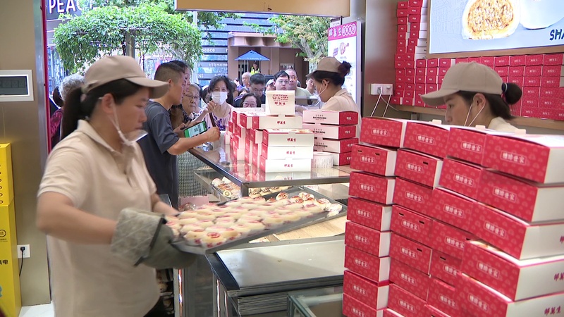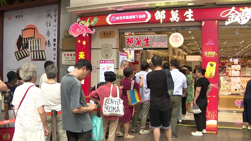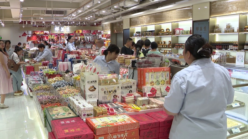 国庆中秋当然少不了月饼,步行街一侧的邵万生月饼专柜前,前来购买月饼的市民游客已经排起了长龙,糟香鲜肉、芋艿毛豆鲜肉等特色月饼都是热销的品种。市民周阿姨告诉记者:“这次准备买点糟香月饼,再买点芋艿毛豆月饼。毛豆的鲜味与芋艿的软糯,再加上肉的鲜香味,真的蛮好。”