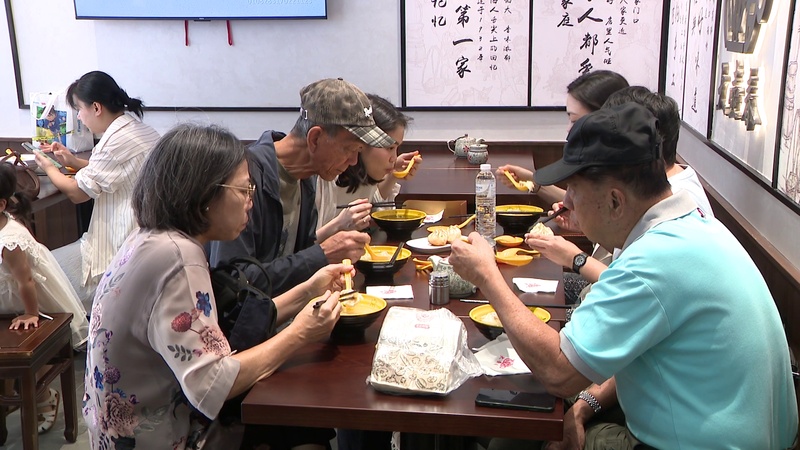 上午,记者在山西路近南京路步行街看到,老字号大壶春已经是顾客盈门,虽然店面不大,只能容纳15张桌子30人同时就坐,但前来品尝上海小吃的市民游客不断。生煎馒头、小馄饨、蟹壳黄、春卷、葱油拌面、排骨年糕等上海小吃让不少市民游客幸福感满满。