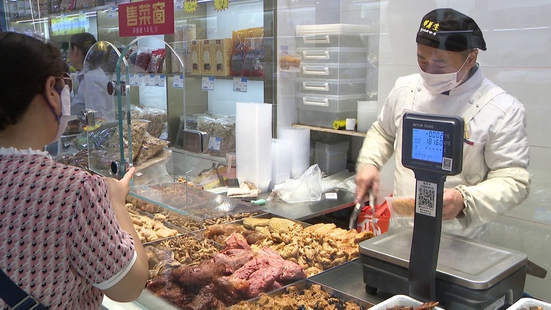 这次邵万生调整,在店堂里增设了熟菜柜台,橱窗柜台中的上海特色熟菜这几天成为了不少市民游客中意的过节品种。市民买到了想要买的熟食,很是开心:“今天我买的熟醉蟹和素的豆腐衣,都是买给母亲吃的。”