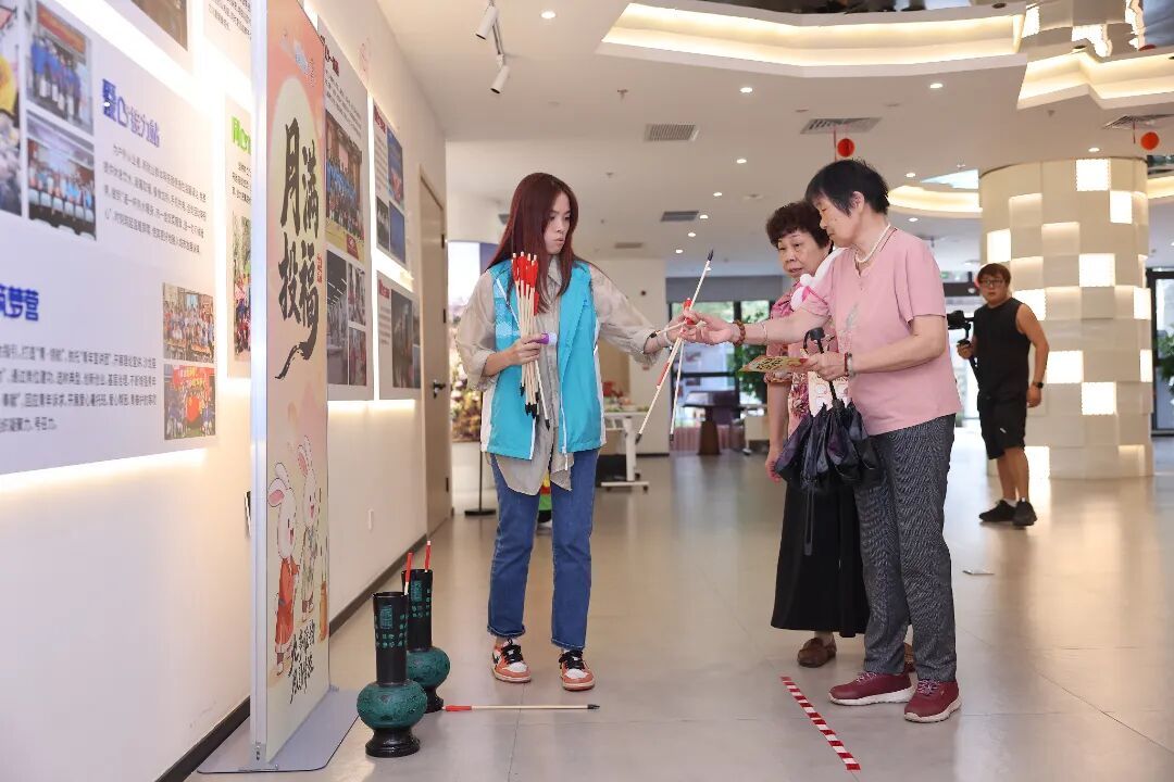 记者在趣味闯关区看到,这里人气颇旺,6个项目吸引了众多居民排队体验。刚完成“锤丸集福”挑战的居民张先生兴奋地表示:“第一次亲身体验宋代运动,比想象中更有趣。既锻炼了手眼协调,又感受了古人雅致生活,形式新颖。”在“桂月猜谜”项目区域,带着孩子一同参与的李女士说:“猜灯谜不仅让孩子学到中秋知识,也让我们重温了传统文化,很有意义。”成功集齐印章的居民兑换到了心仪的节日小礼品,大家都很开心满足。
