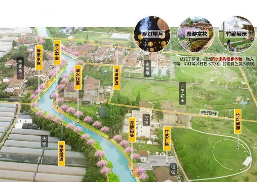 据了解,该项目依托顾泾河自然水系,打造“隐于市井的疗愈田园”,将月狮村、聚源桥村和沈家桥村串联成线,描绘出一幅生动的江南水乡画卷。