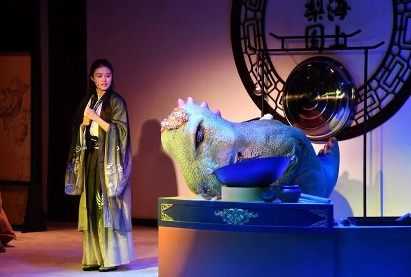 国风奇趣亲子互动赏味秀《豫园来了只大恐龙》,则改编自知名IP,将豫园特色、海派美食与“左殽右胾”“炊饼历史”等中式饮宴礼仪融入剧情。孩子们不仅能登台成为2米高大恐龙的“小助手”,帮助它完成厨艺挑战,更能通过“蒲扇投票”决定剧情走向。