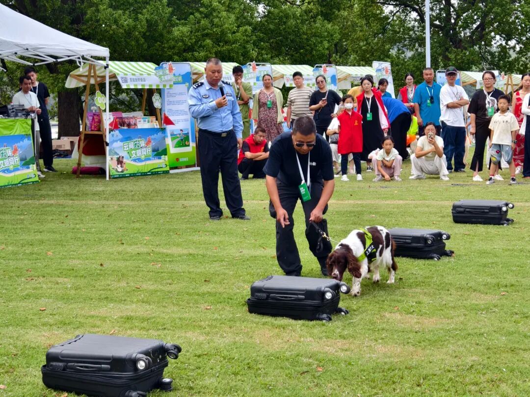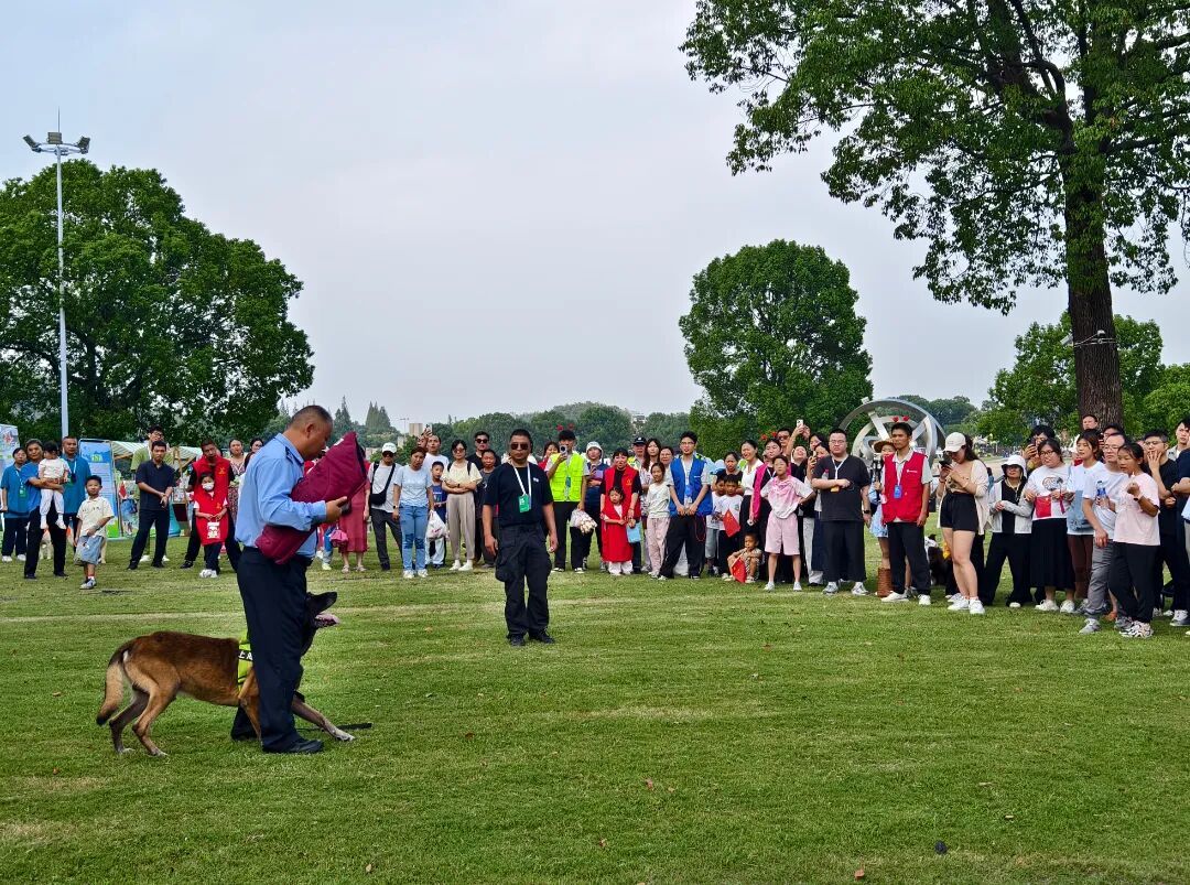 10月1日下午,在月湖雕塑公园“云间宠伴・文明同行”萌宠乐园现场,一场围绕着文明养宠知识展开的市集吸引了不少宠物家长的目光。他们带着狗狗在草坪上交友漫步,观看警犬展示工作技能,与“英雄狗狗”合影,通过萌宠知识问答丰富养宠知识。大家还蒙上眼睛沉浸式体验导盲犬的工作情境,学习了解在生活中如何“尊重工作犬”。