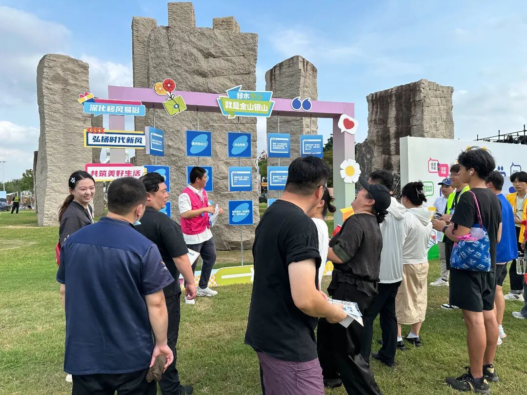 在公园里的各大标志性景观前,手执手帐来到“文明同行·绿色相伴”互动区域游玩打卡的市民同样络绎不绝。除了现场打卡集章,活动还开设了线上文明行走体验平台,搭配文明知识问答、环保承诺签名互动,让市民立体式参与体验各类文明新风尚。在广场上,“文明会客厅·云间风尚集”更是将环保理念及创建成果融入天幕“课堂”,让大伙儿亲近自然之余,也为城市文明献策助力。
