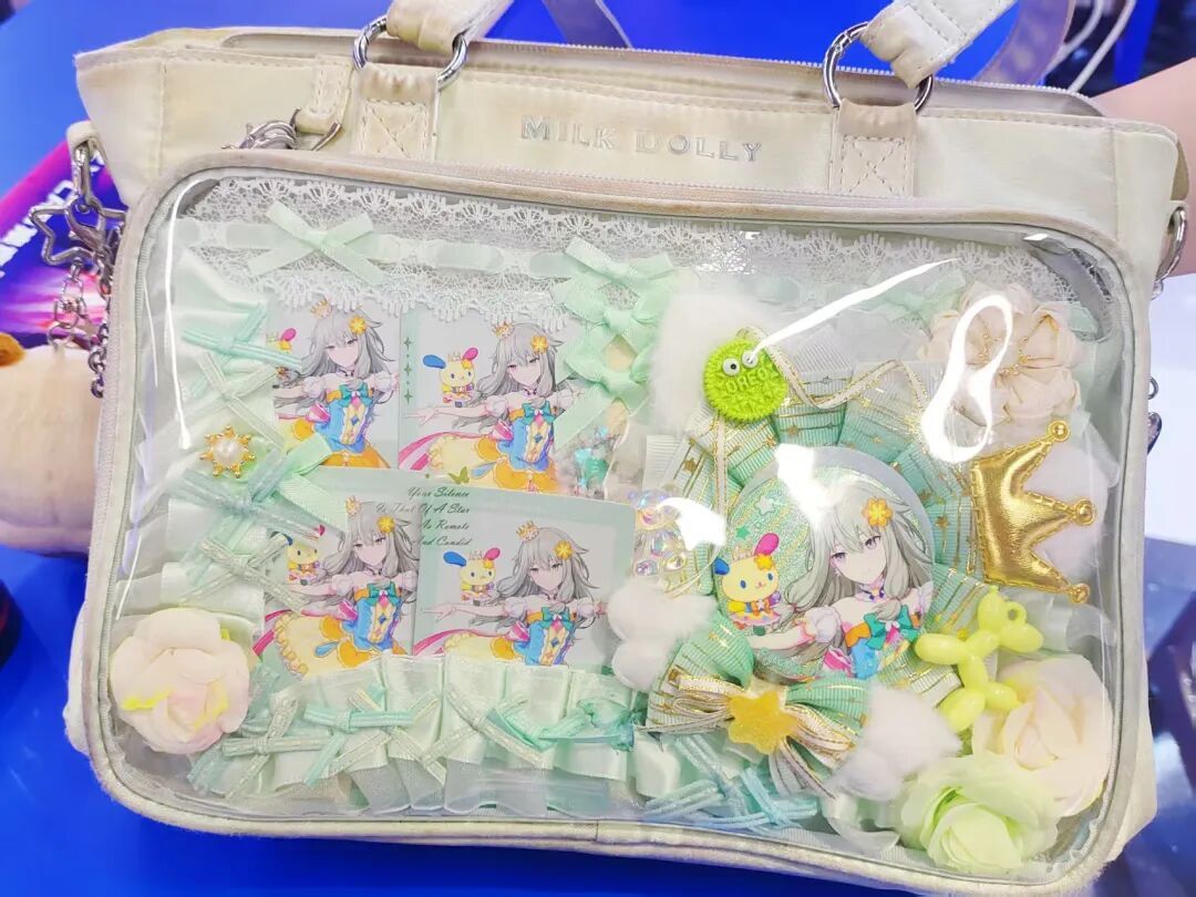 早上10点半,快闪店刚开门,小嫣就遇到了两位购买限定商品的女生。“我好像在她们身上看到了自己,对动漫角色的喜爱是很相似的。”从前台的抽屉里,小嫣拿出了自己精心装扮的小包,花朵、蕾丝和蝴蝶结簇拥在动漫角色的周围。