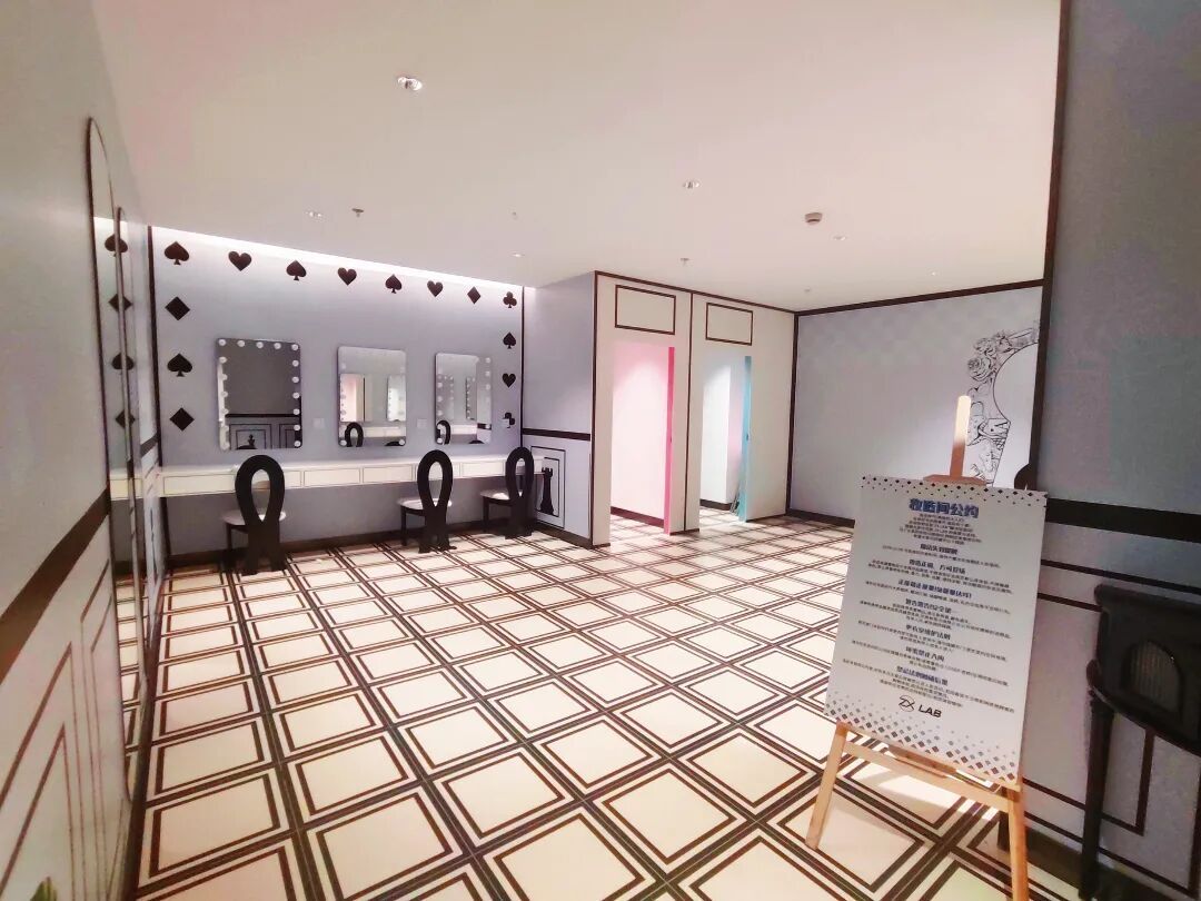 “沉浸式”,这个词在如今的百联南方有了生动的体现:在商场2区,四楼设置了可供coser化妆的妆造间,有全身镜和专门的更衣室;卫生间的图标是魔法师,镜子贴上了魔法阵;电梯也做成电车的样式,一开门就能看到动漫角色的形象。