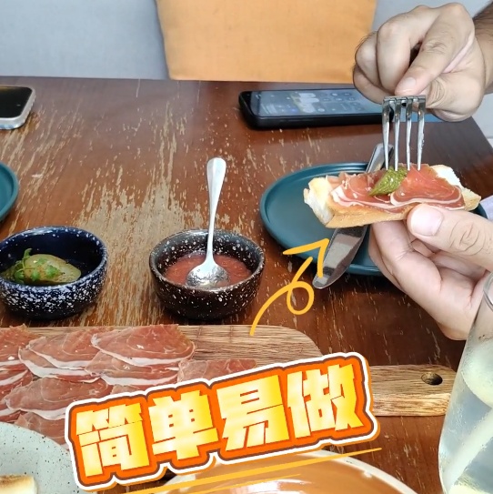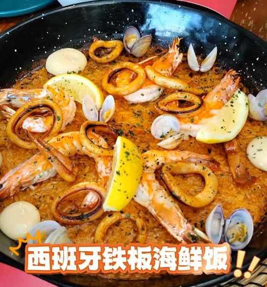 通过翻阅其他网友分享的攻略和餐厅店员推荐,他们尝试了经典凯撒鸡肉沙拉、伊比利亚黑猪火腿、西班牙铁锅海鲜饭、明火炭烤牛舌和巴斯克芝士蛋糕等菜品。