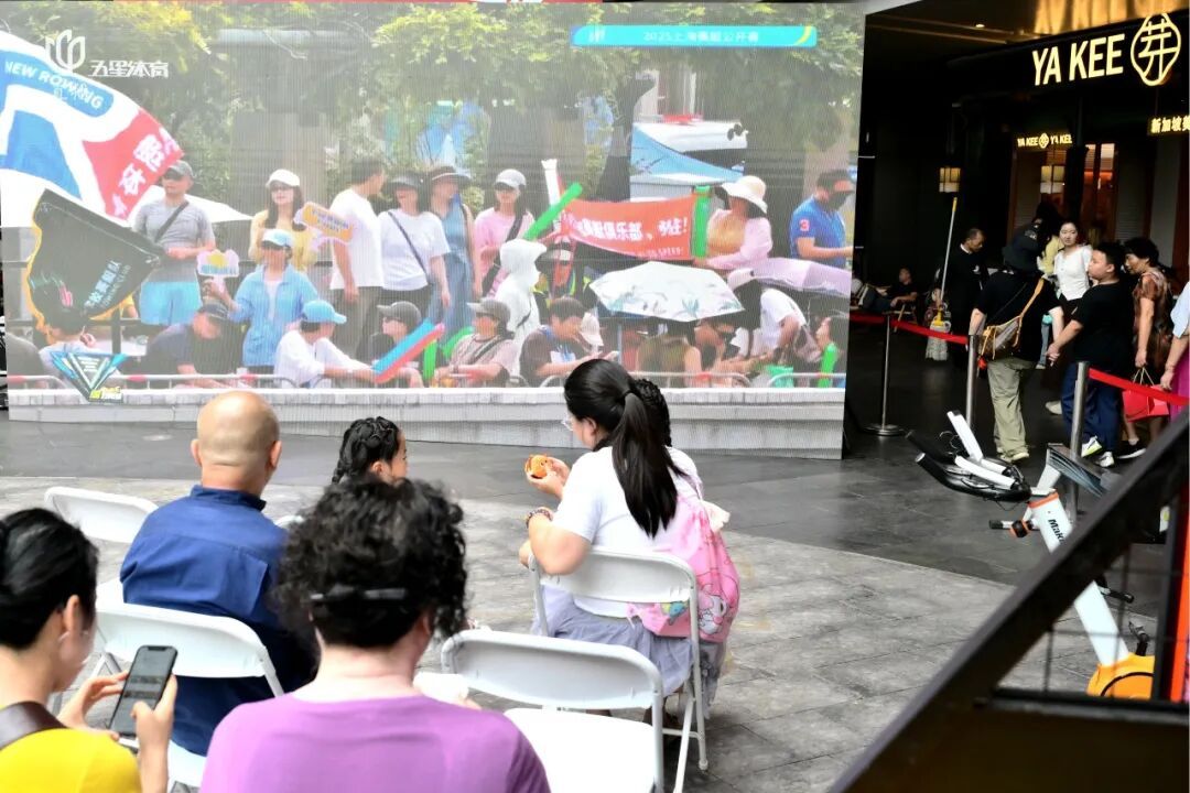 比赛正值静安国际光影展,赛事开幕式运动员苏河巡游环节设置时长约一分钟的停船观影互动,展示内容由光影节和公开赛联合呈现。不少市民特意规划了“下午观赛、晚上看灯”的行程,大半天“泡”在苏河湾商圈的万象天地、大悦城及周边区域。