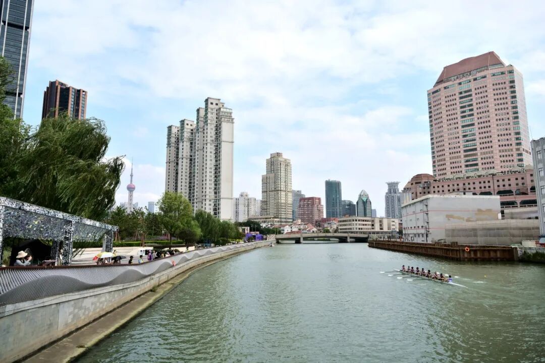 上海赛艇公开赛赛道沿途集聚了包括四行仓库、静安国际中心、苏河湾中心等城市标志景观,更体现了苏州河河水治理的成果,充分展现赛艇与自然、城市的完美结合。2021年底,苏州河中心城区河段42公里岸线实现贯通,苏河两岸成为市民休闲游憩的好去处。苏州河静安段产业集聚、人才汇聚、景观宜人。“十四五”以来,静安区以打造“水脉、文脉、绿脉、人脉”四脉合一的世界级滨水中央活动区、世界级“城市会客厅”为目标,稳步推进苏河湾功能区高质量发展。