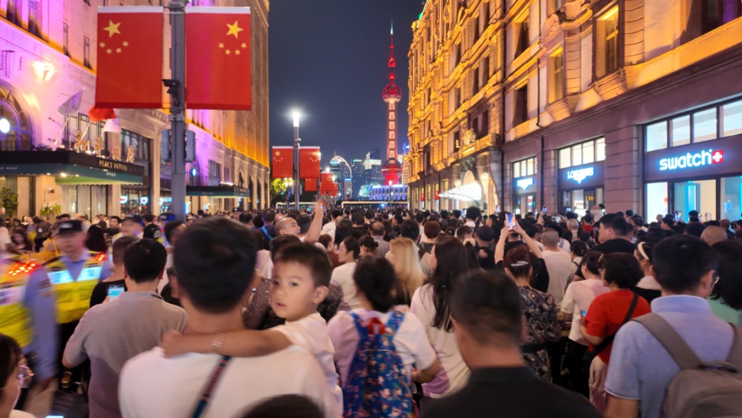 黄浦分局大保办负责人李健详细介绍了人流管控的具体措施:“对于外滩和南京路的人流管控,我们采取了江堤通道单向通行、南京路南进北出单向通行以及波次放行等措施。我们严格控制进入外滩客流区域的密度,尽量保证游客能够缓步、安全地进入外滩游览。江堤全部实行了单向通行,并且我们会根据现场实际情况调整通行方向,以调节外滩局部区域的客流密度,确保游客能够均衡分布在外滩江堤上。未来几天,我们已经做好了相关预案,以迎接更大客流的到来,包括交通管制、视情引导客流向远端分流等措施。”