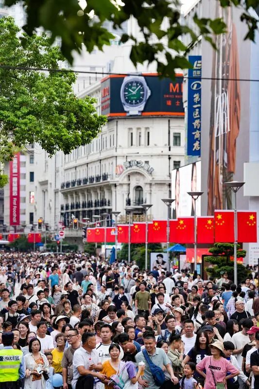 据统计,除了外滩滨水区客流大幅上升外,南京路步行街、豫园、新天地、田子坊等热门景点也迎来了客流高峰。南京路步行街瞬时峰值达到5万人,累计客流23.1万人次;豫园瞬时峰值2.3万人,累计客流20万人次;新天地瞬时峰值2.4万人,累计客流10.3万人次;田子坊瞬时峰值0.4万人,累计客流1.3万人次,均较去年同期有显著增长。