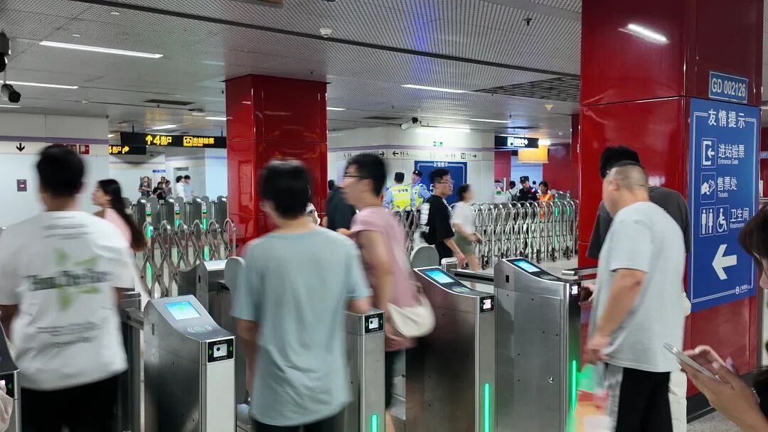10号线豫园站值班站长瞿志扬详细介绍了车站的应对措施:“我们目前对闸机模式进行了调整,原本1号口的出站闸机有10台改为了进站模式,4号口的5台闸机改为了出站模式。同时,1号口还开启了无包通道,就是为了加速乘客进站。”