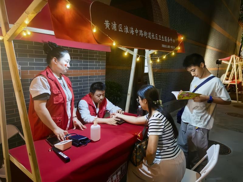 傍晚时分,中共一大会址出口处人头攒动。由淮海中路街道与中共一大纪念馆联合打造的“从胜利走向胜利——庆祝新中国成立76周年”红色文化集市热闹开街,瞬间点燃了城市夜晚的热情。