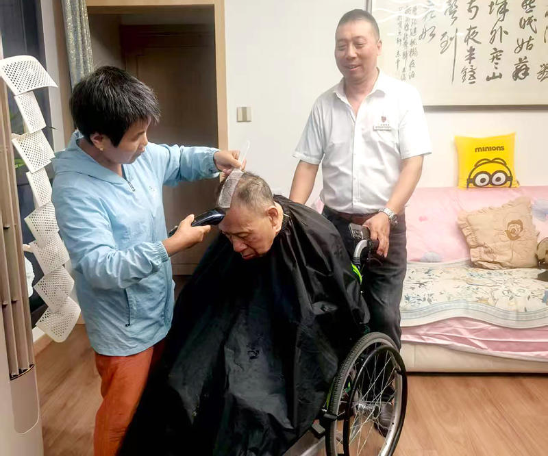 此外,由于小区老龄化程度较高,对于独居老人,老袁会定期找人上门给行动不便的老人们理发,看到他们容光焕发,老袁脸上的笑容格外灿烂。