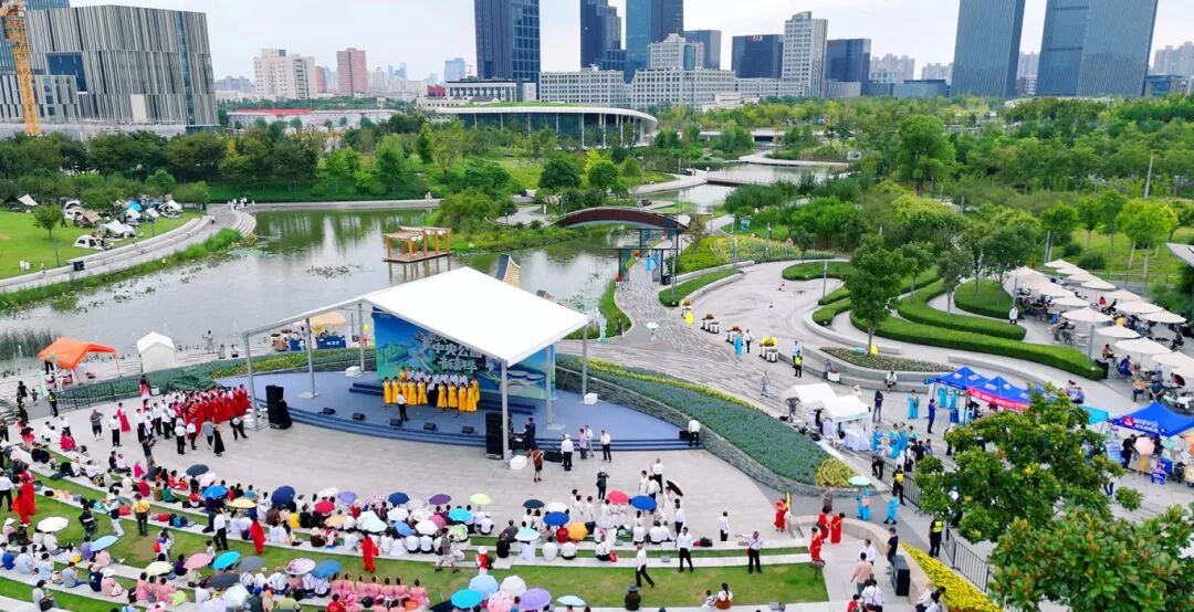 现场,居住在桃浦地区的居民李锋边看着表演激动地说:“我第一时间就预约了首日表演!公园环境美,演出很精彩,让我感受到了浓浓的节日氛围。”带着家人特地赶来TOP中央公园的市民林晓举着五星红旗说道:“初秋的桃浦既能赏景,也能观演,一个地方就满足了一家三代人全部的文化生活。我为今天的演出点赞!”