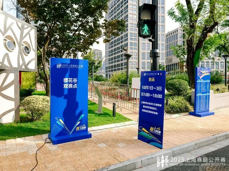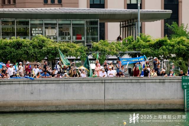 赛场内精英对决扣人心弦,赛场外市民热情同样高涨。为让大众沉浸式感受赛艇运动的激情,今年上艇赛位于黄浦区苏州河畔的樱花谷观赛点,延续了户外开放观赛模式。
