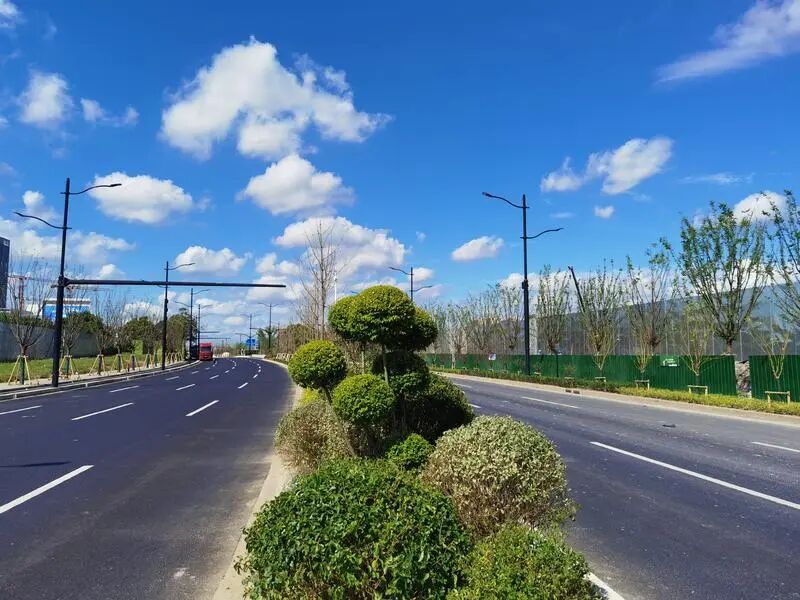 这里是南大路道路改建工程完成后的场景。由于南大路南北两侧正在进行大规模的开发建设,待南大路改建完成后,良好的设施为工程车辆的通行也提供了便利。道路两侧和中央隔离带、机非隔离带补种的绿化也生机盎然,让改建后的南大路越来越美。